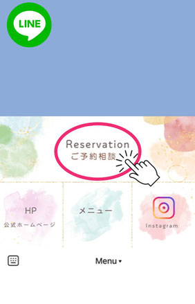 Step1:このページの『お問合せ・予約相談はこちら』マークをタッチ(ハイカラさん公式LINEへと移動します)